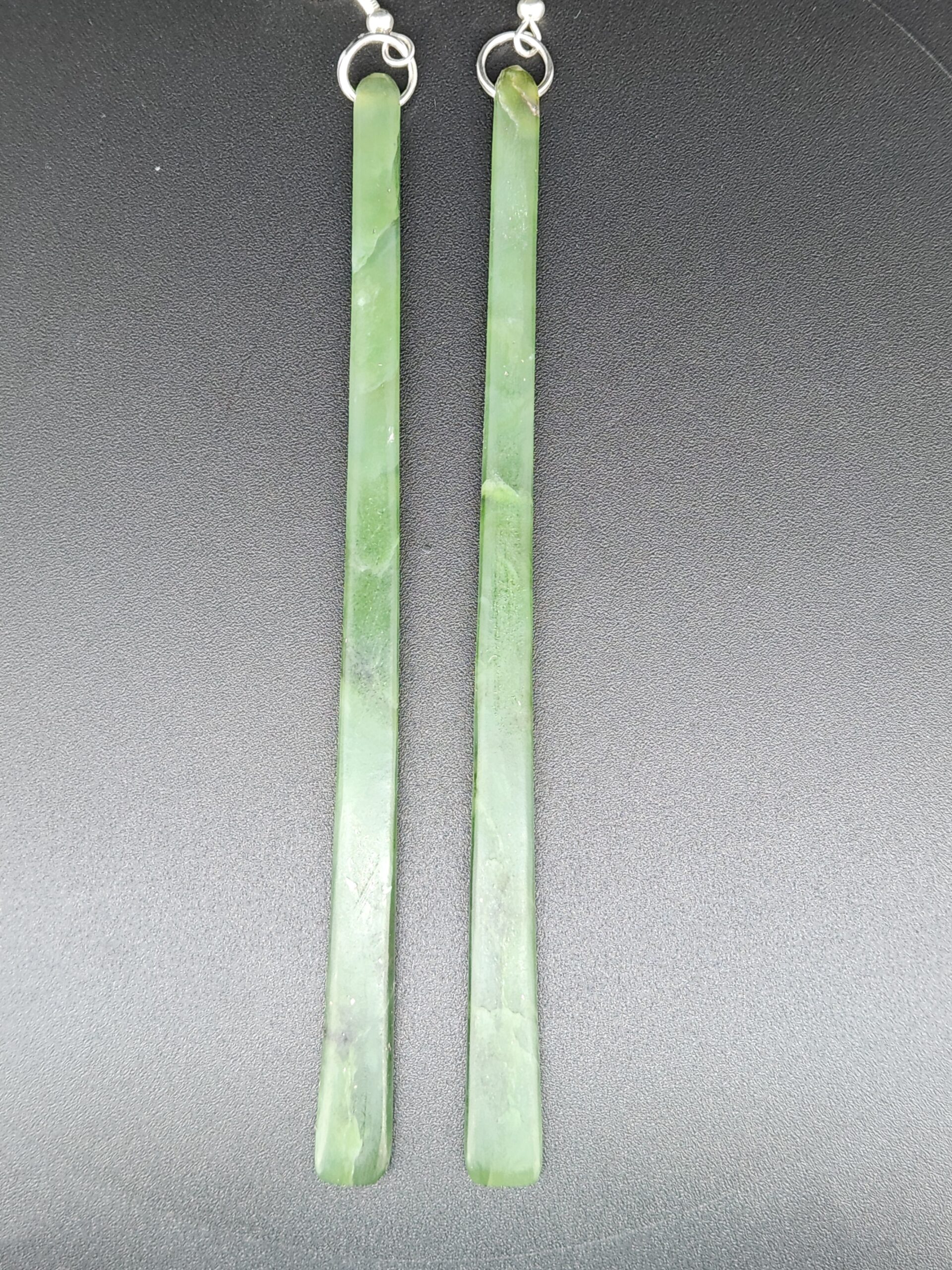 Beautiful and highly prized Kahurangi Jade, hand-made into very long and elegant Roimata, 1105mm in length are a statement wear to that special occassion. this would make a precious gift.